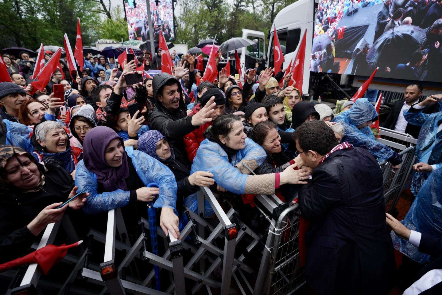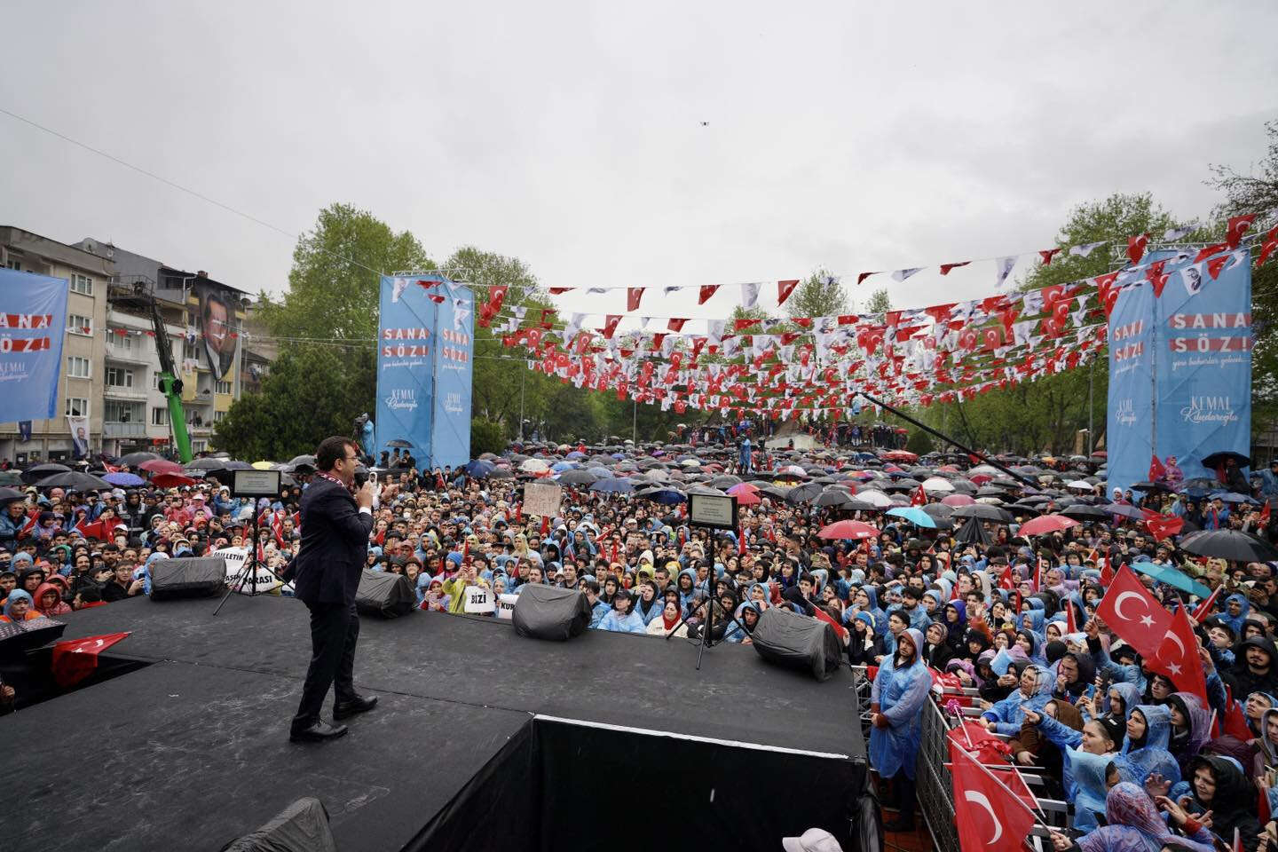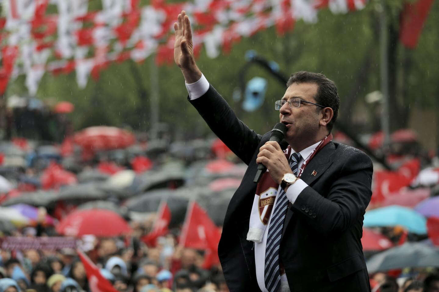 Beraberinde CHP Genel Başkan Yardımcısı Lale Karabıyık, CHP Bursa İl Başkanı Turgut Özkan, Bursa milletvekilleri, milletvekili adayları, ilçe başkanları, Bursa Büyükşehir Belediye Başkan Adayı Mustafa Bozbey, İl Kadın Kolları Başkanı Aysel Okumuş ve İl Gençlik Kolları Başkanı Elifnur Yamak olduğu halde İnegöl’de kurulan platformda sağanak yağmur altında konuşan İstanbul Büyükşehir Belediye (İBB) Başkanı ve Millet İttifakı Cumhurbaşkanı Yardımcısı Ekrem İmamoğlu, "Sizinle sabaha kadar ıslanmaya varım" dedi.