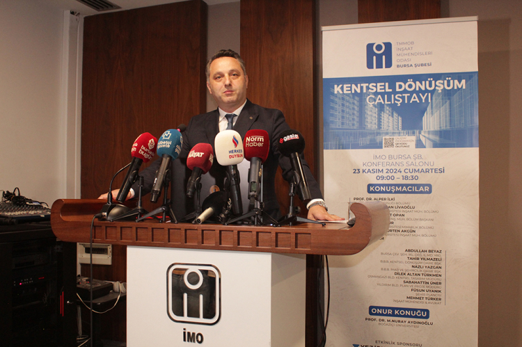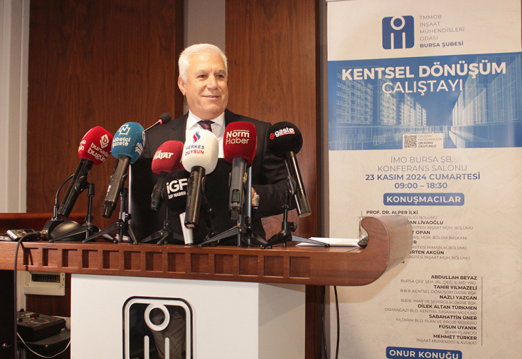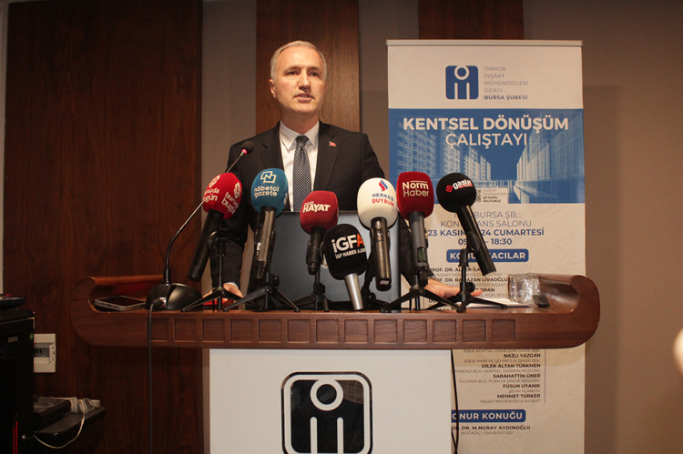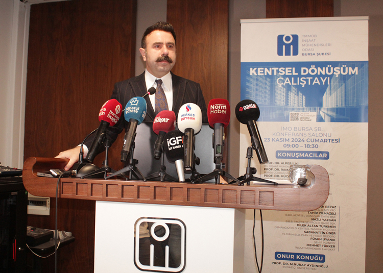 “Öncelikle Kentsel Dönüşüm Stratejisi oluşturulmalıdır. Kentsel dönüşüm sadece yerel yönetimler ile değil aynı zamanda ilgili tüm kamu kurumları, üniversiteler ve akademik odaların aynı masada buluştuğu, konunun finansal, sosyolojik ve hukuki boyutları ele alınarak, halkımızla birlikte katkı sağlanacağı bir süreç olmalıdır. Toplumun tüm paydaşlarının, Kentsel Dönüşüm Strateji Belgesine dahil edilmesi, fikirlerinin alınması ve ortak çözüm önerileri geliştirilmesi, kentsel dönüşümün başarısı için kritik öneme sahiptir. Bütün dönüşümler buna uygun, ayrıcalıksız ve herkese eşit uygulanmalıdır. Kentsel dönüşüm süreçlerinde, şehrin estetik değerlerinden sosyal ihtiyaçlarına kadar her türlü görüşün dikkate alınması gerekmektedir. Bu noktada, Bursa’nın kentsel dönüşüm projelerinde tüm paydaşlarla iş birliği içinde, ortak bir dil ve anlayışla hareket edilmesi gerektiğini bir kez daha vurgulamak isterim. Bu ortak akıl yalnızca Bursa için değil, tüm ülkemiz için örnek bir yaklaşım olmalıdır. Bursa'nın kentsel dönüşüm sürecinin başarıya ulaşabilmesi için öncelikli olarak güvenli, sağlıklı, çevre dostu ve sürdürülebilir projelerin hayata geçirilmesi gerekmektedir. Bu doğrultuda hem bilimsel veriler hem de toplumsal katılım ışığında hareket etmek, sürecin her aşamasında mühendislik disiplinini ve uzmanlığını en iyi şekilde kullanmak en büyük hedefimiz olmalıdır. Bu açıdan bakıldığında kentimizde son yıllarda uygulanagelen sadece Yık-Yap anlayışından süratle çıkılmalı, kentsel dönüşüm adına bilimsel ve teknik tüm yöntemler masaya yatırılmalıdır. Biz İnşaat Mühendisleri Odası olarak kentsel dönüşüm, başka bir kent sorununa dönüşmeden topyekûn Bursa için ayağa kalkmalıyız diyoruz. Hep birlikte, ortak akıl ve güçlü bir iş birliği ile daha sağlam, sağlıklı ve sürdürülebilir bir Bursa inşa edeceğimize olan inancımızı yineleyerek, bu çalıştayın şehrimiz ve ülkemiz için hayırlı olmasını temenni ediyor BURSA HEPİMİZİN DİYORUZ.”