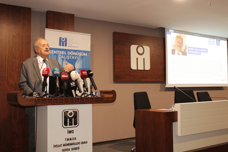 İMO Bursa Şube tarafından Vezirhan Çimento Sponsorluğu’nda, BAOB Yerleşkesi’ndeki Şube Konferans Salonu’nun da “Kentsel Dönüşüm Çalıştayı” düzenlendi. Kentsel Dönüşümün tüm yönleriyle ele alındığı Çalıştay’ın Onur Konuğu Boğaziçi Üniversitesi Deprem Mühendisliği Ana Bilim Dalı Öğretim Üyesi Prof. Dr. Mehmet Nuray Aydınoğlu oldu.