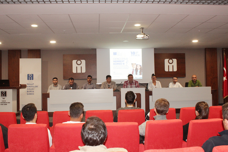 İnşaat Mühendisleri Odası (İMO) Bursa Şubesi Yönetim Kurulu, Gençlik Komisyonu’nun katkıları ile gerçekleştirilen Gençlerle Serbest Kürsü etkinliğinde genç inşaat mühendisleri ile bir araya geldi.