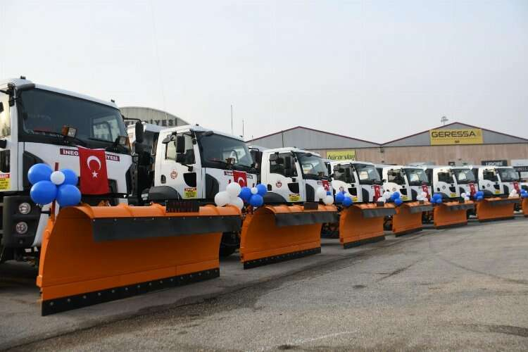 İnegöl ve civar bölgelerde yüksek kesimlerde başlayan kar yağışıyla berber, İnegöl Belediyesi de kış hazırlıklarını tamamlayarak karla mücadele çalışmaları için bekleyişe geçti. Henüz şehrin kırsal bölgelerinde yollarla ilgili bir kapanma söz konusu olmasa da tüm hazırlıklarını tamamlayan İnegöl Belediyesi’nde, 3 müdürlük karla mücadele çalışmalarında aktif rol oynayacak. İnegöl Belediyesi’nin öz sermayemizle bünyesine kattığı 126 yeni araç, ekip ve ekipmanlar ile karla mücadele çalışmaları sürdürülecek.