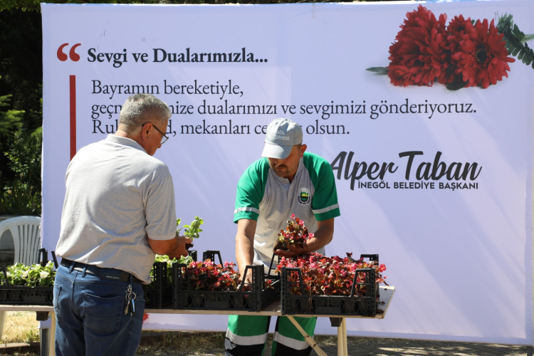 İnegöl Belediyesi, Kurban Bayramı arifesinde mezarlık ziyareti yapan vatandaşlara 6 mezarlıkta 9 bin adet çiçek dağıtımı yaptı. Dağıtılan çiçekler vatandaşlar tarafından mezarlıklara ekildi.
