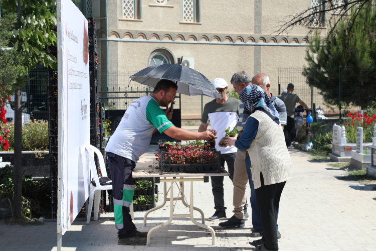İnegöl Belediyesi mezarlıklarda 9 bin adet çiçek dağıttı