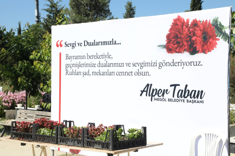 İnegöl Belediyesi Park Bahçeler Müdürlüğü ve Defin Hizmetleri Müdürlüğü iş birliğinde yürütülen çalışmayla; Alanyurt Köyiçi Mezarlığı, Alanyurt Kent Mezarlığı, Yeniceköy, Akhisar, Cerrah ve Huzur Mahallesi mezarlıklarında toplam 9 bin adet çiçek dağıtımı yapıldı.