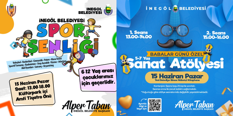 İnegöl Belediye Başkanı Alper Taban, Babalar Günü vesilesiyle hazırlanan Babalar Günü Özel Sanat Atölyesi ve aynı güne gelen yaz spor okullarının başlangıcı olan Spor Şenliği etkinliklerinin aile bağlarını güçlendirmeye ve çocukların gelişimine katkı sağlamayı hedeflediğini belirerek tüm ilçe halkını programlara davet etti.