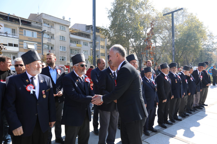 Çelenk sunumuyla başlayan 29 Ekim Cumhuriyet Bayramı töreninde sırasıyla; Kaymakamlık, Garnizon Komutanlığı ve İnegöl Belediye Başkanlığı çelenkleri anıta bırakıldı. Daha sonra saygı duruşunda bulunularak İstiklal Marşı okundu. Törenin ilk bölümü burada sona erdi.