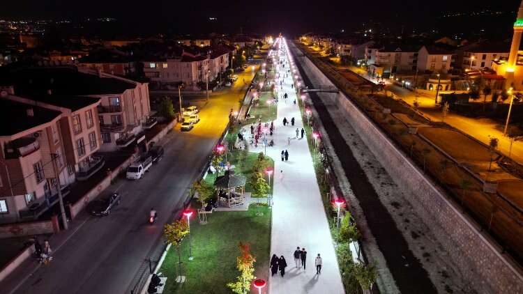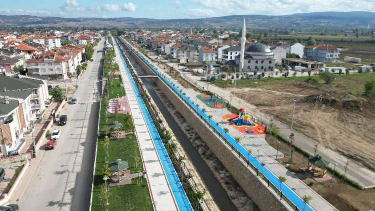 “Semtlerimizde uyguladığımız yaşam alanlarımız var. Koruluklar, semt sahaları, çeşitli sosyal donatı alanları. Bunlardan biri de Kanal İnegöl. Mesudiye Mahallemizde imar hattımızın bittiği noktada geçen bir Bedre deremiz var. Burada yaklaşık 1 kilometre uzunluğundaki alanda bir yenileme çalışması yaptık. Hem kanal ıslahı gerçekleştirdik hem etrafında kullanım alanları oluşturduk.”