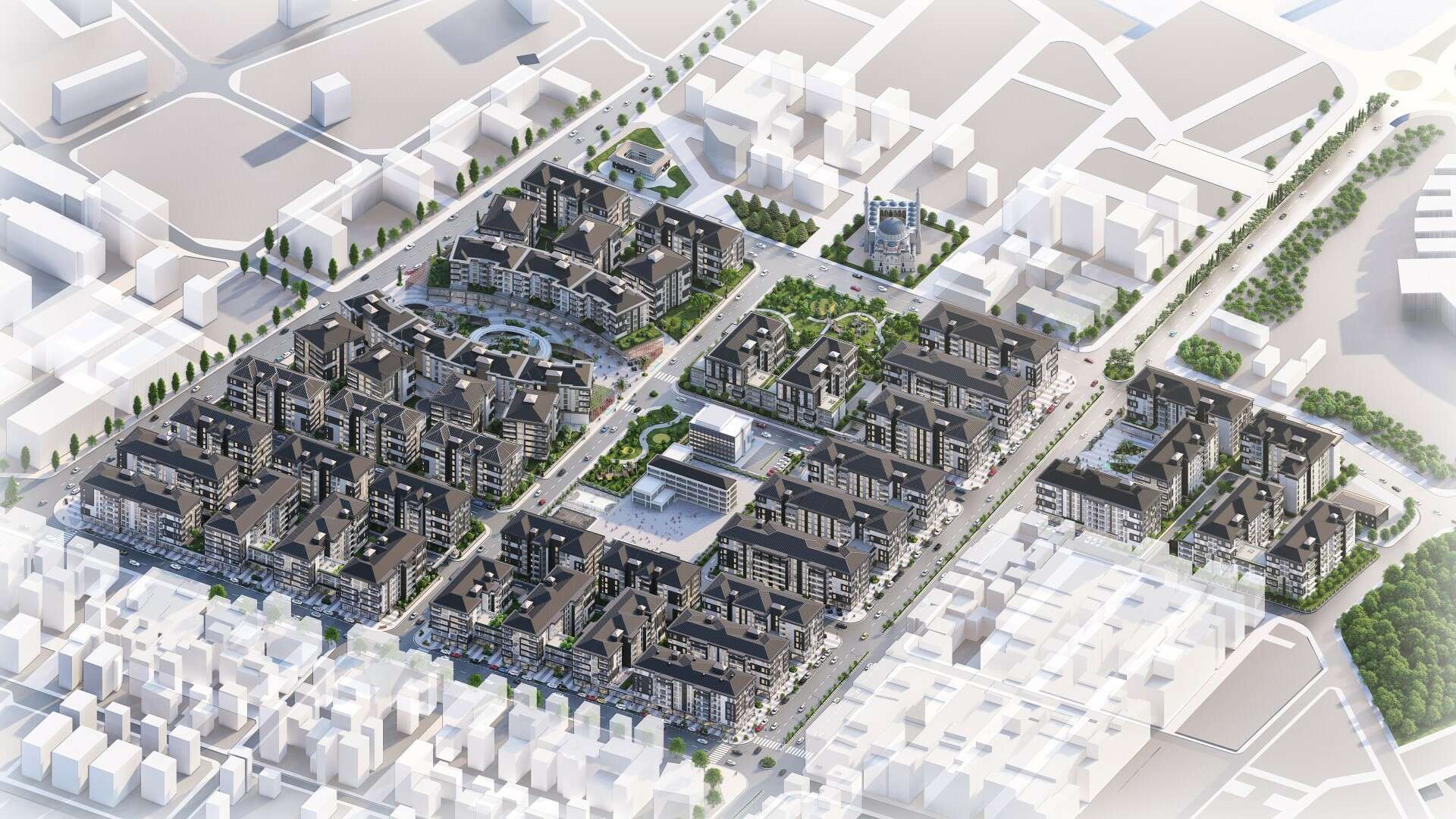 “4 ana caddemizin arasında kalan bölgemizle beraber, sağlık ocağımızın da bulunduğu adayı kapsayan yaklaşık 250 dönümlük bir hamuru biz yeniden yoğurduk. Yollarıyla, caddeleriyle, sokaklarıyla… Mevcut durumda yol ağlarına baktığımızda birbirini karşılamayan ve karmaşık yollar, yeni projede ise alan gayet güzel şekilde kullanılmış, tüm alan fonksiyonel şekilde değerlendirilmiş. İnegöl’ün yeni bir merkezi olacak burası. Burada toplamda ticaret alanlarıyla, konutlarıyla toplamda 1787 adet bağımsız alan oluşturulacak. Kendi içerisinde meydanların yerleştirildiği, ticaret alanlarının oluşturulduğu bir dönüşüm olacak. Yine 1225 kapalı ve 187 açık olmak üzere toplam 1412 araçlık otoparkın bulunduğu bir çalışma olacak. 7 ayrı etap olarak ele aldığımız bir proje olacak. İçerisinde yine okulumuz, sağlık ocağımız gibi alanların da yer aldığı bir dönüşüm olacak. Hem kendi site ve blok içlerinde yeşil alan olacak hem de geneli kapsayan bölgenin yeşil alanları bulunacak.”