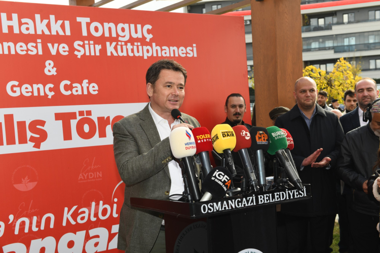 Osmangazi Belediye Başkanı Erkan Aydın, göreve başlamalarının ardından geçen 7 buçuk ay gibi kısa bir sürede, 22'nci açılış ve temel atma programını gerçekleştirdiklerini belirterek, “İsmail Hakkı Tonguç Bağış ve Şiir Kütüphanesi'nde önce, Osmangazi Meydanı'nda bulunan Hasan Ali Yücel Dünya Klasikleri Kütüphanesi ile Genç Kafe'nin açılışını yapmıştık. Bu açılışın ardından yaklaşık 5 ay geçti. Bu süreçte şunu gözlemledik; Gençlerimiz oraya gelerek sosyalleşiyor, öğrencilerimiz ders çalışıyor, vatandaşlarımız ise kitapları okuyarak kendi fikir ve kültür dünyalarını zenginleştiriyor. Bunu yaparken de uygun fiyata aldıkları kaliteli kahvelerini yudumlayabiliyorlar. Hemen yan tarafta yer alan Halk Lokantası'nda ise 80 liraya 4 çeşit yemek yiyebiliyorlar. Hatta paraları yoksa dahi askıda yemek ile ücretsiz olarak karınlarını doyurabiliyorlar. Aynı uygulamayı burada da hayata geçiriyoruz. Vatandaşlarımızdan aynı talebi göreceğimizi de düşünüyorum” dedi.