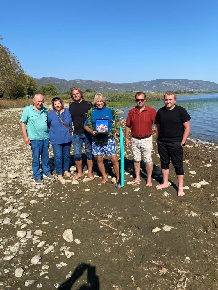 İznik Gölü'ndeki kuraklığa dikkat çekmek için gölü baştan başa yüzdü