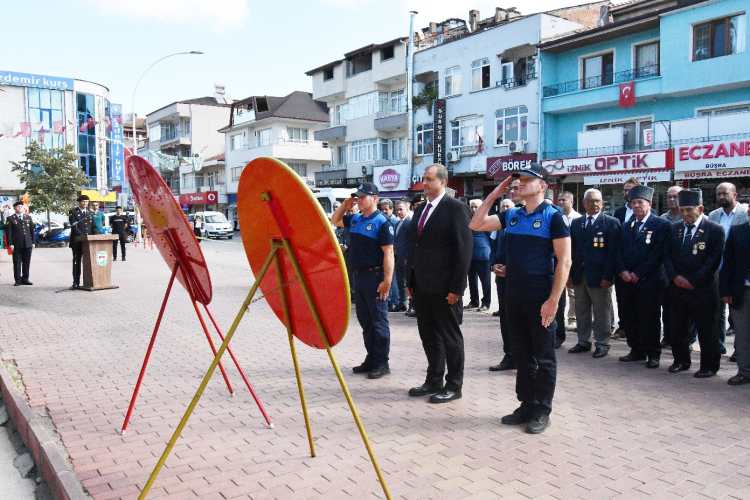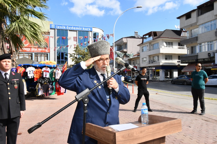 İznik’te 19 Eylül ‘Gaziler Günü’ kapsamında düzenlenen tören saat 10.30’da Atatürk Anıtı’na çelenk sunumu, Saygı duruşu ve İstiklal Marşı’nın okunmasıyla başladı.