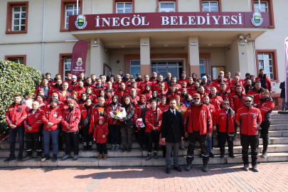 Belediye Başkanvekili Fevzi Dülger ise “Gönüllülük esasıyla hareket eden ekibimize çok teşekkür ediyorum. Ben deprem sabahı 08.00’da Beşinci Mevsim Kültür Merkezi önüne gittiğimde orada tam teçhizatlı hazır ekibi görünce müthiş gururlandım. Belediye Başkanımızın da bu konudaki hassasiyetini biliyoruz. Başkan beyin bu konudaki hassasiyetini ve bu arkadaşlarımıza karşı samimiyetini, güveninin ne kadar doğru olduğunu gördüm. Bugün İNDAK’ı artık sadece biz değil, tüm Türkiye biliyor. Biz bu ekiple ne kadar gurur duysak az. Umutların tükendiği anda dün bir vatandaşımızı canlı olarak kurtardılar. Ekipten arkadaşımız ilk imdat sesini duyduğumda dizlerimin bağı çözüldü diyor. Benim de boğazımda cümleler düğümleniyor. Bir cana temas edebilmek ne kadar kıymetli. Ben İnegöl ve ülkemiz adına ekibimizin her bir ferdine teşekkür ediyorum” şeklinde konuştu.