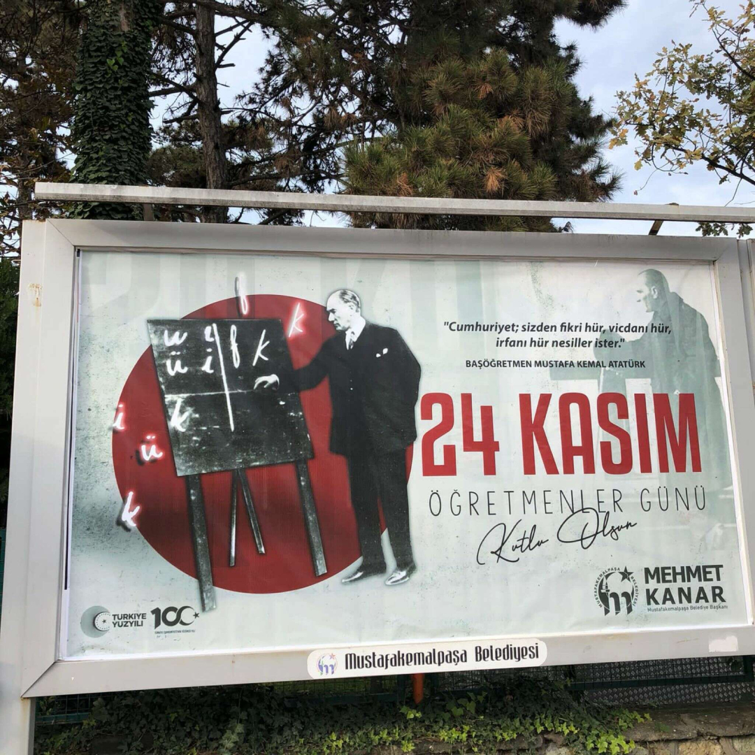Özetle; arkadaşlarımız 24 Kasım için iki çalışma planlıyor. Birincisi öğrencilerin dikkatini çekecek bir çalışma ve okullar bölgesinde kullanılacak, diğeri bu hafta billboardlar da yer alan Başöğretmen Atatürk’ün yer aldığı öğretmenler günü kutlaması. Öğrenciler için yapılan çalışmaya onaylanmamasına rağmen yanlışlıkla sadece birkaç noktada uygulandığı fark edilir edilmez, kaldırılmıştır.