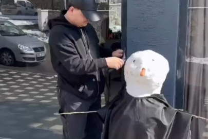Kar yağışıyla birlikte fazla tıraşa gelmeyen olunca, berber ise çareyi kardan adamı tıraş etmekte buldu. Dükkanının önüne yaptığı kardan adama önlük giydiren esnaf, hem saç hem sakal tıraşı yapmayı ihmal etmedi. Farklı farklı kar yağışına sevinen vatandaşların yaşadığı komik anlar, kameralara ise saniye saniye yansıdı.