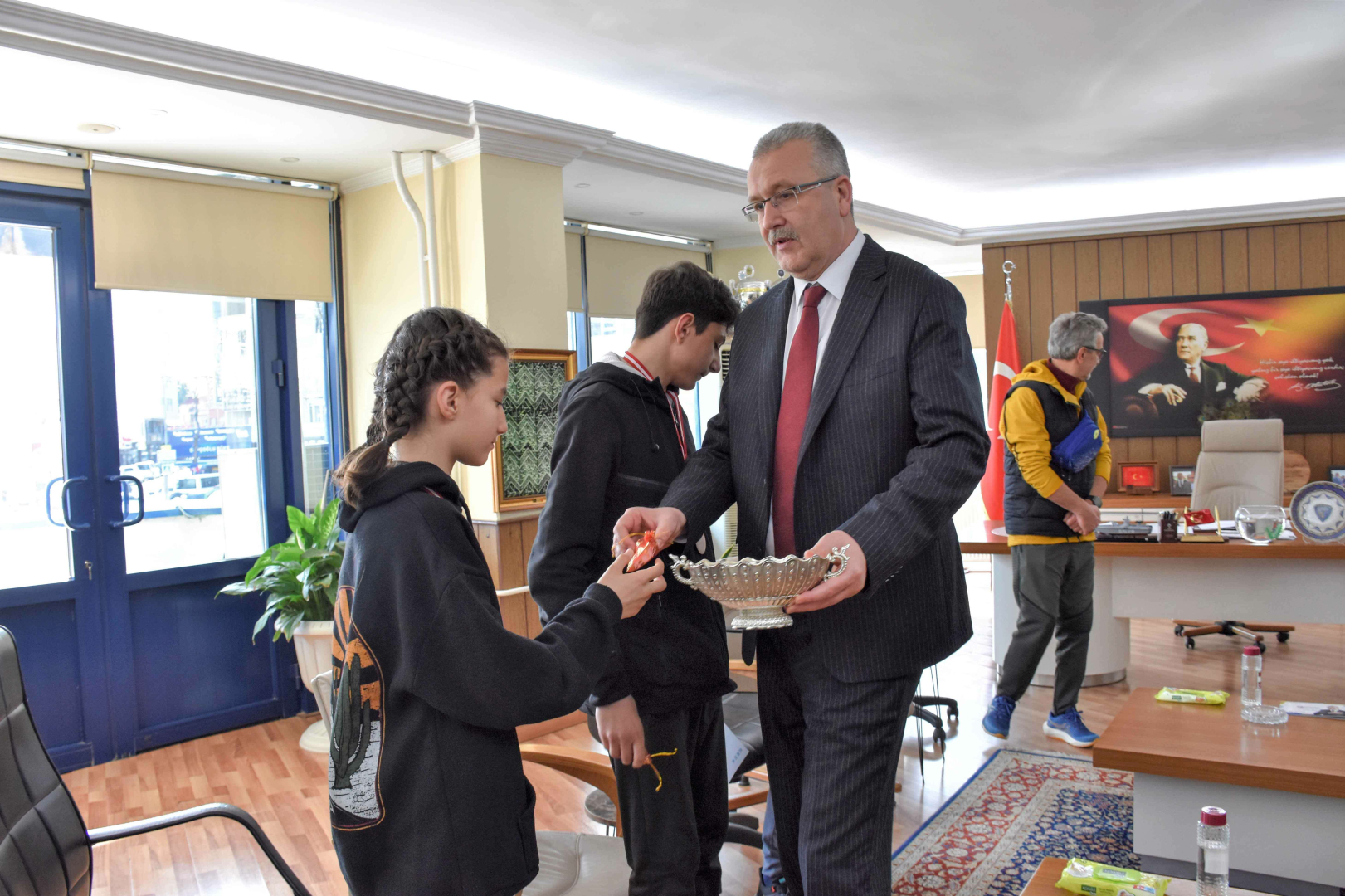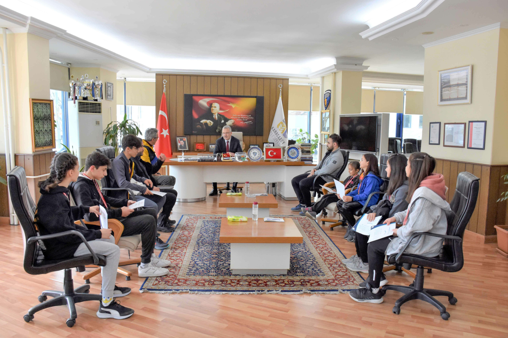 Önceki gün sporcular, antrenörleri Ömer Gönültaş ve Yılmaz Şahin ile Belediye Başkanı Ali Özkan’ı makamında ziyaret etti.