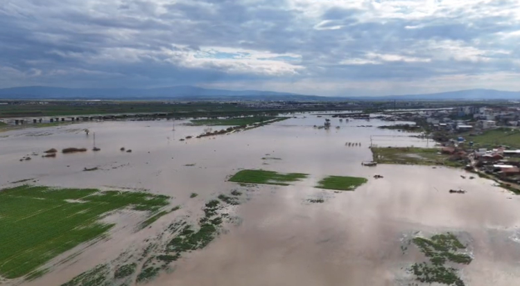 Bursa'nın Karacabey ilçesinde şiddetli yağışlar sebebiyle derelerin taşması sonucu Karacabey Ovası'nda 10 bin dönümden fazla tarım arazisi sular altında kaldı.