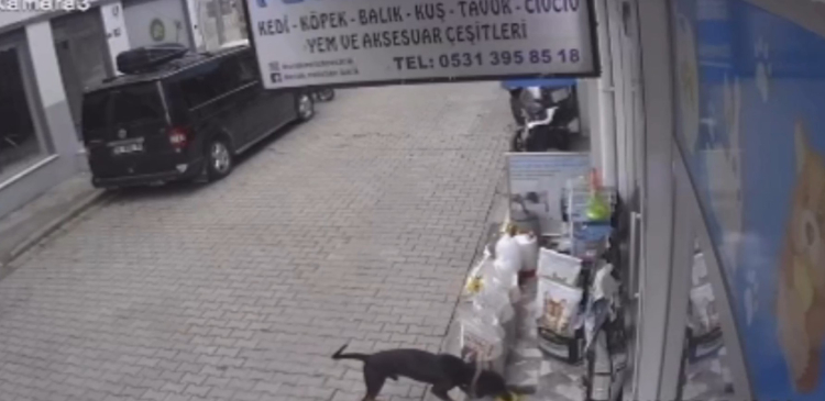 İznik ilçesinde petshop işletmecisi Burak Oruç, sabah dükkanın önünde sokak hayvanları için koyduğu kabı göremeyince güvenlik kamerasını izledi. Görüntülerde her sabah dükkanını açarken beslediği kedi ve köpeklerin bir birine saldırmadan tartıştığını, bir köpeğin ise kediyi kıskanıp, dolu mama kabını alarak karşıya geçtiğini gördü.