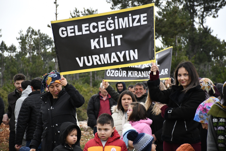 Bursa'nın Keles ilçesinde köy merasına cezaevi yapılmasını istemeyen bir grup vatandaş eylem yaptı.