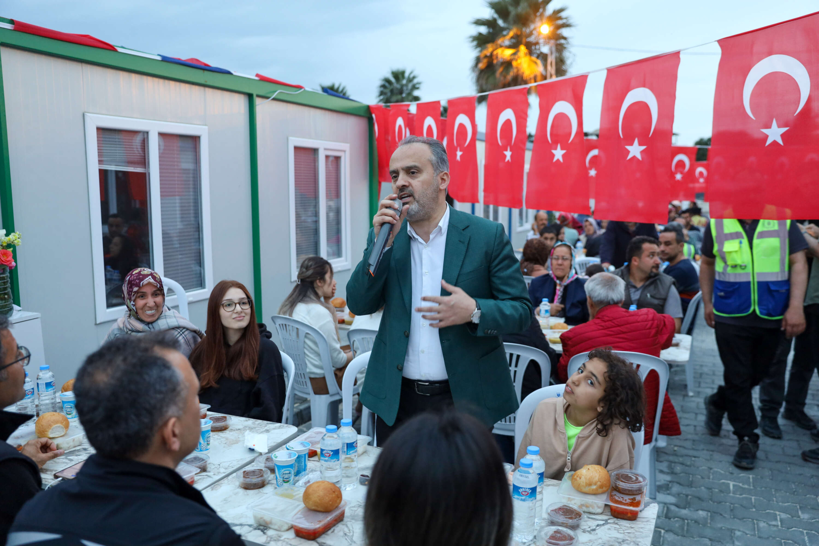 Bursa Büyükşehir Belediyesi, bayram öncesi Hatay’da bayramlık ve oyuncak dağıtarak depremzede çocukların yüzünü güldürdü, konteyner kentte iftar sofrasında bir araya getirdiği vatandaşlara moral verdi. Büyükşehir tarafından kurulan Uluçınar konteyner kentindeki iftara katılan Başkan Aktaş, “İnşallah yaraları en kısa zamanda sarıp, o eski güzel günlere döneceğiz” dedi.