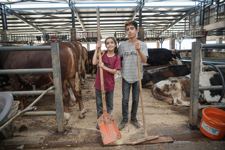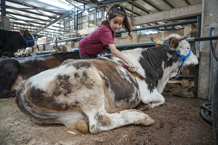 Henüz 12 yaşında olan Aytaç Özmen ile 8 yaşındaki kardeşi Ecrin Özmen, sabahın erken saatlerinden itibaren babalarına yardım ederek hayvanların bakımını üstleniyor. Büyükbaş hayvanların yemlenmesi, sulanması ve temizliği gibi işleri büyük bir sorumlulukla yerine getiren kardeşler, yaşlarının çok ötesinde bir gayret gösteriyor.