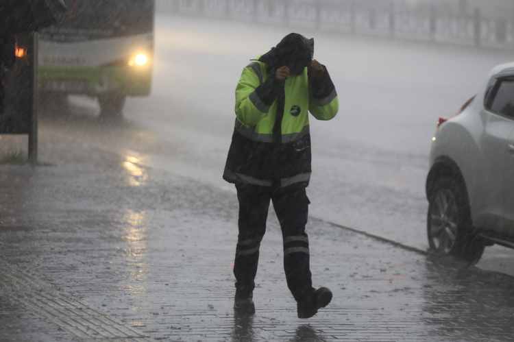 Şehir merkezinde aniden bastıran yağmur nedeniyle vatandaşlar korunmak için sığınacak yer aradı.