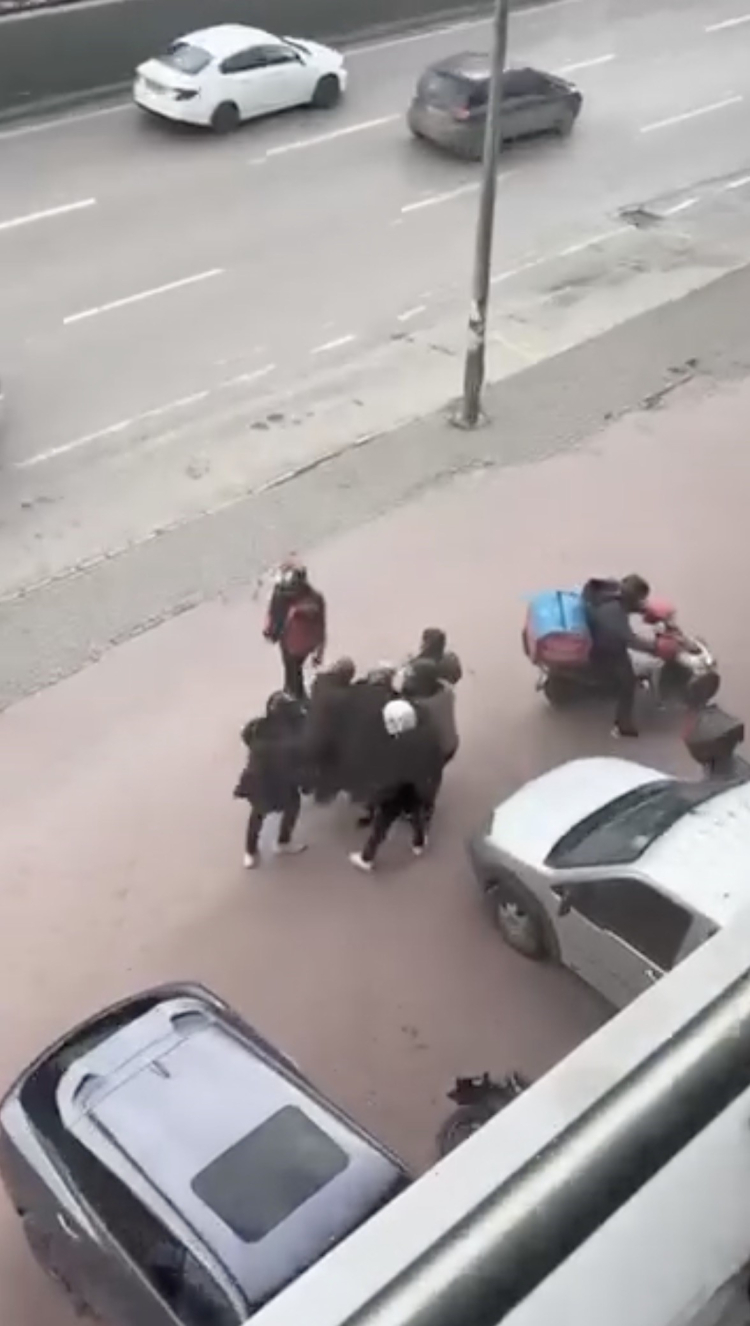 Bu sırada bölgede bulunan 5-6 motosikletli kurye ise yaşlı kadının önünde ve yanında durarak rüzgâra karşı siper oldu. Vatandaşların yardımıyla yaşlı kadın güvenli bir noktaya ulaştırıldı.