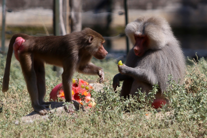 Bursa Hayvanat Bahçesi'ndeki veteriner ekipleri, Dünya Dondurma Günü dolayısıyla Habeş Maymunlarına meyveli dondurma hazırladı. Maymunların hastalık riski nedeniyle endüstriyel üretim dondurmaların sakıncalı olduğunu ifade eden veterinerler, beslenme programlarına uygun doğal meyvelerden oluşan dondurmaları özenle hazırladıklarını belirtti. Hava sıcaklıkları 35 derecelere ulaşırken, maymunlar sıcak havada buz gibi meyveli dondurmanın keyfini çıkartmak için adeta birbirleri ile yarıştı. Hayvanat bahçesini ziyaret eden çocuklar ise ilk kez dondurma yiyen maymunları görmenin şaşkınlığını yaşadı.