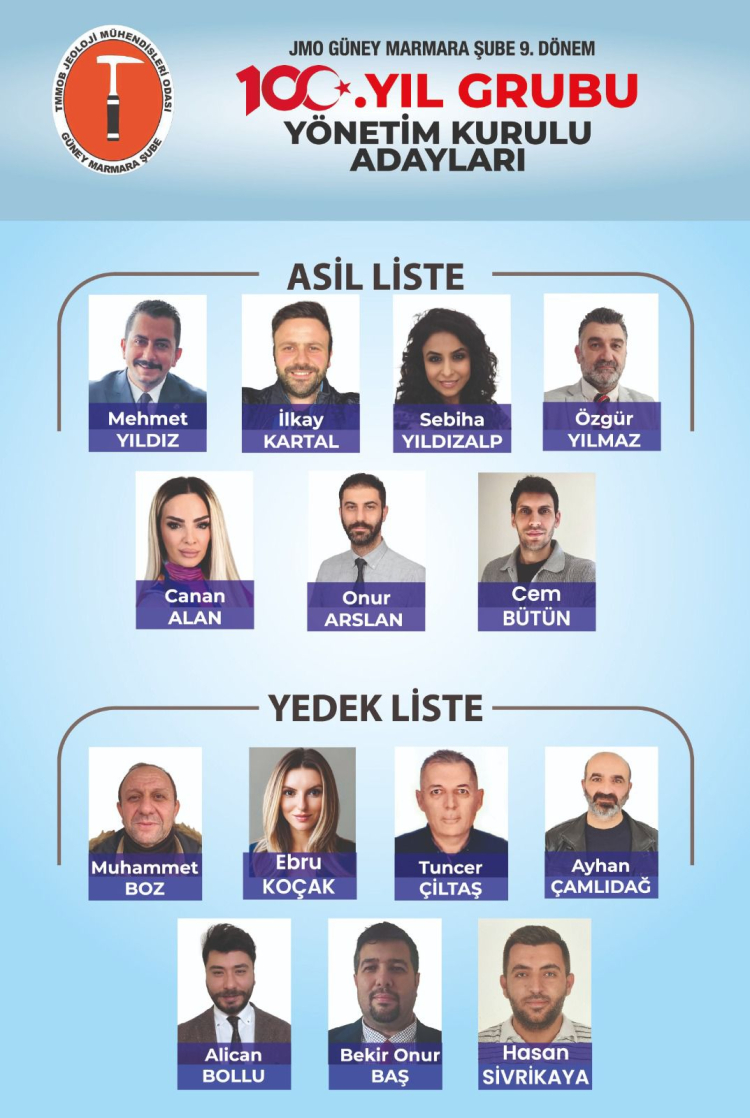 Yaklaşık 2 yıllık 8. Çalışma Dönemi süresinin sonuna geldik. Ekmeğimizi kazandığımız mesleğimiz ve tüm ünvanların üstünde tuttuğumuz “Jeoloji Mühendisi “ ünvanımızı hakettiği seviyeye çıkarmak ve başta Bursa’mız olmak üzere 4 ilimizde de (Bursa-Balıkesir-Çanakkale-Yalova) kentlerin geleceğine yön veren Güçlü, Çalışkan ve Saygın bir meslek odası olmak adına 07-08 Şubat 2026 tarihinde gerçekleştirilecek olan Jeoloji Mühendisleri Odası Güney Marmara Şubesi’nin Genel Kurulu ve Seçimlerinde,