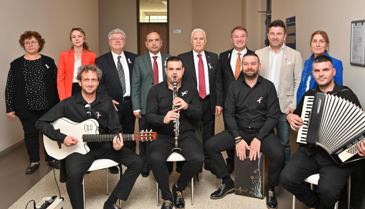 Bursa Büyükşehir Belediyesi Sağlık İşleri Dairesi Başkanlığı, 1-31 Ekim tarihleri arasında yürütülen ‘Meme Kanseri Farkındalık Ayı’ etkinlikleri kapsamında belediye personeline pembe kurdele ve erken teşhisin önemini anlatan broşür dağıttı. Büyükşehir Belediye binasındaki etkinliğe, Büyükşehir Belediye Başkanı Mustafa Bozbey, Genel Sekreter Yardımcısı Mehmet Emin Direkçi, Sağlık İşleri Daire Başkanı Düşünsel Şentürk de katıldı. Etkinlik kapsamında Orkestra Şube Müdürlüğü personeli tarafından mini konser de verildi.