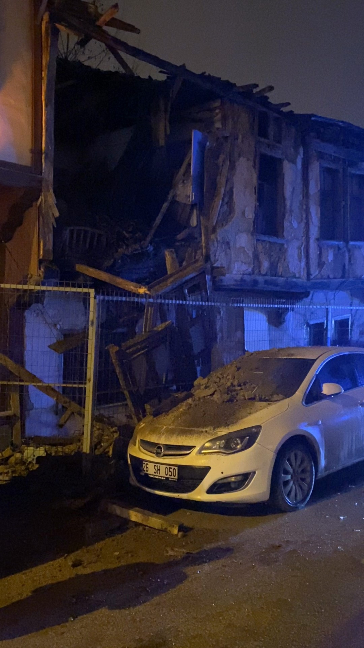 Olay saat 23.30 sıralarında Cuma Mahallesi Hastane Meydanı Sokak'ta meydana geldi. Sokaktaki 2 katlı binanın bir kısmı büyük gürültüyle yıkıldı. O sırada sokaktan geçen birinin olmaması faciayı önlerken, bina sokakta park halinde olan 26 SH 050 plakalı otomobilin üzerine devrildi. Araçta maddi hasar meydana geldi. İtfaiye ve polis ekipleri sokakta güvenlik önlemi alarak, ulaşıma kapattı.