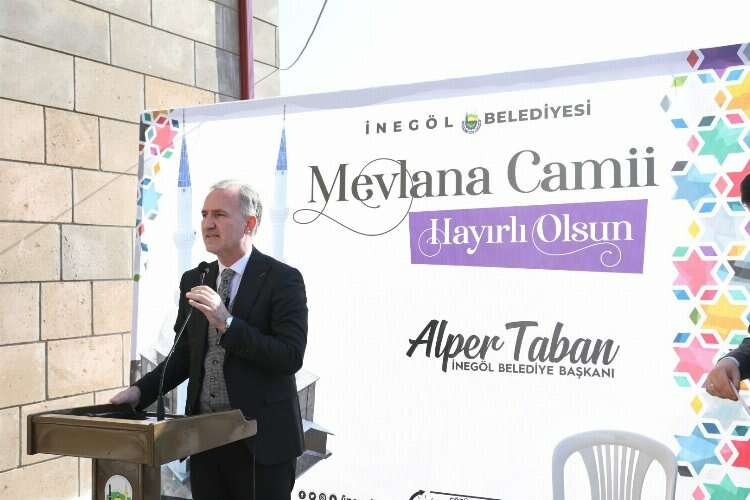 2022 yılında temeli atılan ve 1 buçuk yıl gibi kısa bir sürede tamamlanan, 1640 metrekare alan içerisinde 350 metrekare zeminde yapılan caminin açılış törenine protokol üyeleri de katıldı. Cuma namazı öncesi yapılan mini törende, cami derneği ve mahalle sakinleri adına AK Parti Meclis Üyesi Mahmut Özkan kısa bir selamlama konuşması yaptı. Özkan, “Huzur Mahallemizin sakinlerinin yaptıkları hayırlar devam ediyor. 2012-13 Yeşil Cami, 2018-19 Selahattin Eyyubi Camii, 2023-24 Mevlâna Camisini yaptık. Bunların yanında imam evleri, taziye evi ve kuran kursları yaptık. Bu süreçte bizlerden hiçbir zaman desteğini esirgemeyen Büyükşehir Belediye Başkanımız Sayın Alinur Aktaş’a ve İnegöl Belediye Başkanımız Alper Taban’a teşekkür ediyorum. İnşallah önümüzdeki yıl da bir medrese projemiz var. Camimizin hayırlı olmasını diliyorum” dedi.