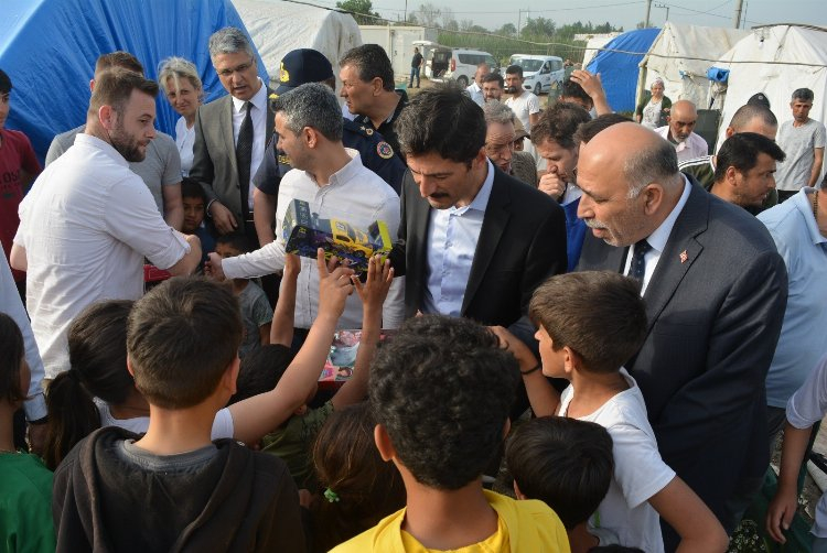“İlçemize hoş geldiniz. Devlet her zaman yanınızda” diyen Karacabey Kaymakamı Hakan Kafkas, yerel yönetimle birlikte mevsimlik tarım işçilerinin yaşamlarını kolaylaştıracak ne varsa yapmaya gayret göstereceklerini söyledi. Kaymakam Kafkas ve Belediye Başkanı Karabatı ayrıca, çadırlarda kalan çocuklara çeşitli hediyeler dağıtarak onlarla sohbet etti.