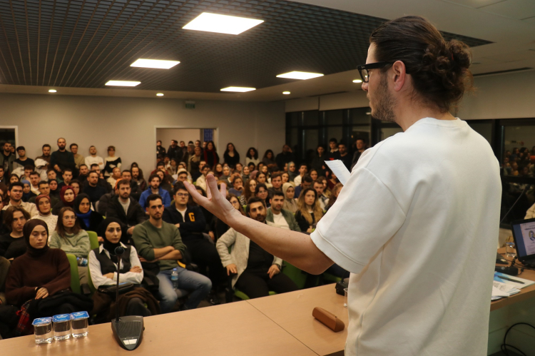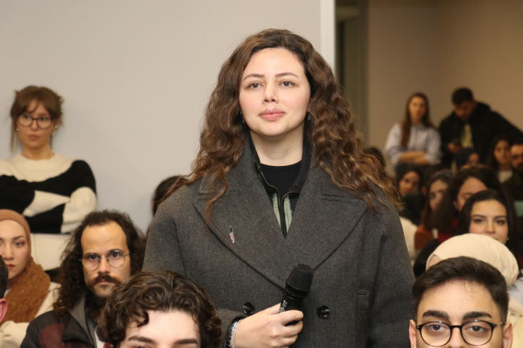 Sedat Bayrak sunumunun ardında toplantıya katılan genç mimarların sorularını cevaplandırdı.