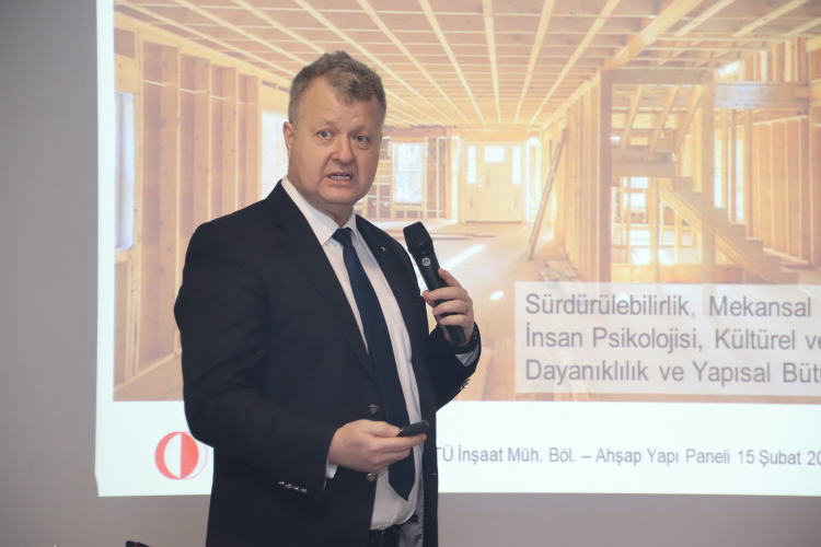 Bursa Teknik Üniversitesi Mimarlık Bölümü Dr. Öğretim Üyesi Sinem Tapkı’nın moderatörlüğünde gerçekleştirilen panelde; ODTÜ İnşaat Mühendisliği Bölümü’nden Prof. Dr. Ahmet Türer, Ulusal Ahşap Birliği Yönetim Kurulu Üyesi Mehmet Akif Asmaz, AHŞAPDER Yönetim Kurulu Başkanı Ağaç İşleri Endüstri Mühendisi Erkan Kalafat, Kocaeli Üniversitesi İnşaat Mühendisliği Bölümü’nden Dr. Öğretim Üyesi Erkan Akpınar, Van Yüzüncü Yıl Üniversitesi İnşaat Mühendisliği Bölümü’nden Doç. Dr. Barış Erdil, Mimar Sinan Güzel Sanatlar Üniversitesi Mimarlık Bölümü’nden Doç. Dr. Mehmet Selim Ökten ve Yapıstatik Proje Mühendislik firmasından İnşaat Yüksek Mühendisi Erdem Kazım Demirkıran konuşmacı olarak yer aldı.