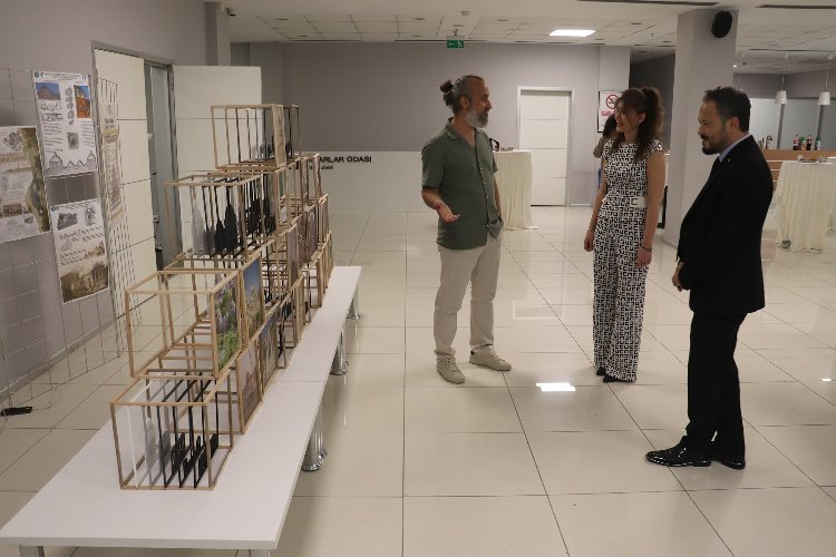 TMMOB Mimarlar Odası Bursa Şubesi 2. Başkanı Rahmi Dede, programa katılan Bursa SMMM Odası Başkanı Hüseyin Halil, Başkan Yardımcısı Seçil Bayram ve Yönetim Kurulu Sekreteri Yunus Arabacı ile konuklara Mimar Sinan Anma Haftası etkinliklerinde açılışı yapılan Mimar Sinan’ın eserlerinin yer aldığı maketler ve posterler hakkında bilgi verdi.