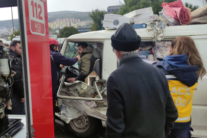 Kazada minibüs sürücüsü araç içinde sıkıştı. İtfaiye ekipleri tarafından araç içinden çıkarılan yaralı sürücü ambulansla hastaneye kaldırıldı.