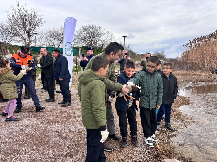 Bursa'da 1. sınıf öğrencileri, avuçlarına sığmayan ördekleri Dünya Yaban Hayatı Günü'nde doğaya salarak farklı bir etkinliğe imza attı.