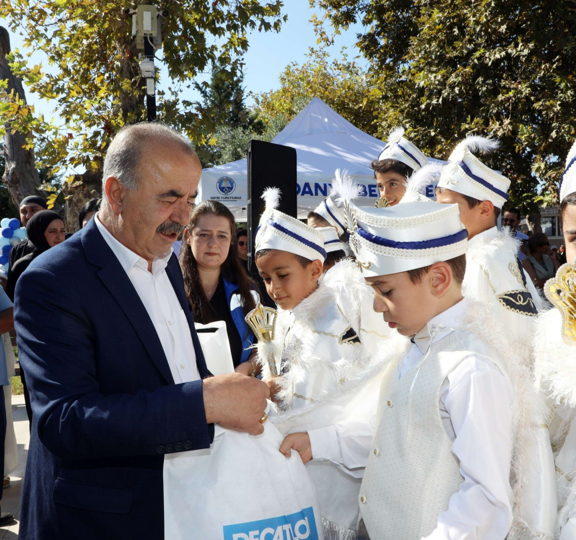 Göynüklü Yeni Cami Hatibi Haydar Aydın tarafından Kur’an-ı Kerim Tilaveti ve duaların okunmasıyla başlayan sünnet şenliğinde Mudanya Belediye Başkanı Hayri Türkyılmaz, sünnet olan çocuklara çeşitli hediyeler dağıttı. Sünnet çocuklarıyla yakından ilgilenen Mudanya Belediye Başkanı Hayri Türkyılmaz, “Bugün çocuklarımızın ve ailelerimizin mutluluklarına ortak olup, sevinçlerini paylaştık. Tüm sünnet çocuklarımıza sağlıklı uzun ömürler diliyorum” dedi. Gün boyunca kendileri için kurulan özel platformda gönüllerince eğlenen sünnet çocukları, patlamış mısır ve pamuk şekerlerinde tadına baktı.