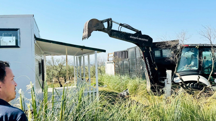 Mudanya Belediyesi, İlçe Tarım Orman Müdürlüğü'nün öncülüğünde başlatılan yıkıma Jandarma ve Mudanya Belediyesi Zabıta ekipleri eşlik ettiler.