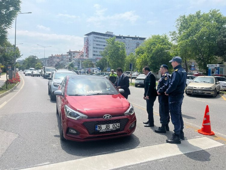 Mudanya’da Karayolu Trafik Haftası etkinliklerinde, yaya geçidi önünde yapılan denetimlerle dikkat çekti.