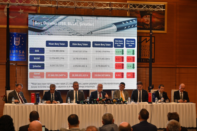 Yunuseli Havalimanı'nın tekrar büyükşehir belediyesine tahsis edilmesini talep ettiklerini belirten Başkan Bozbey, "Büyükşehir tahsisinde olan yeri aldılar. Özellikle afet durumunda buranın kullanılabilecek en iyi alanlardan bir tanesi olduğunu, küçük uçakların afet sırasında oraya inip orada bir çok ürünü ve acil ürünleri getirebileceğinin programını yaptık. Destek bekliyoruz. Orası bakanlığa değil büyükşehir uhdesine olmalı. Uçuş eğitim alanı düşüncemiz var. Orası asla ve asla imara açılmayacak olan yerdir. Bursalıların malıdır, Bursalılar orayı koruyacaktır. Farklı düşünenler niyetlerinden vazgeçsinler. Biz gerekli bütün hazırlıklarımızı yaptık. Tarihi mekanlardaki güvenlikçileri çekmedik. Yaptığımız uygulama, bugüne kadar bir sözleşme yapılmış. O sözleşmede taraflar eğer tekrar sözleşme yapma gereği duymazlarsa, yenilenir maddesi koymuşlar. Kim çalışacak. İsimleri kimler? Bunlar önemli. Tarihi turistik alanlarda turizm zabıtası oluşturmaya çalışıyoruz. Yabancı dil bilen insanlar olmasını istiyoruz. Bununla ilgili gönderdiğimiz yazıya karşılık siyasal anlamda başka konuya çevirdiler. Mali durum, 30 milyar borç aldık. 900 milyon dolar borcumuz vardı. Sıkı maliye politikası uyguluyoruz. Nereye ne için harcadığımızı on kez düşünüyoruz. Nisan itibariyle borç 27 milyar 343 milyon, kasım borç tutarı 29 milyar 934 milyon. BUSKİ'nin borcu 4 milyar lira arttı. Nedeni ise devam eden arıtma tesisi ve kanalizasyon projesi dövizli kredi. Hem işlerin hakedişleri geliyor. Dövizle işleniyor. Dövizin artması sebebiyle bir lira döviz arttığında BUSKİ borcu 350 milyon lira artıyor. Büyükşehir ve şirket borçları düşerken, BUSKİ'nin borcu artıyor" şeklinde konuştu.