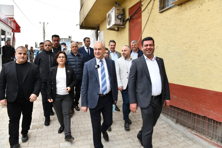 Balık Pazarı’nın yapım sürecini yakından takip eden Mustafakemalpaşa Belediye Başkanı Şükrü Erdem, esnafı ziyaret ederek yeni pazarın ilçeye hayırlı olmasını diledi.