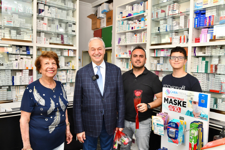 Çelenk sunumu ardından Belediye Başkanı Şükrü Erdem, esnafı ziyaret ederek, karanfil dağıttı.