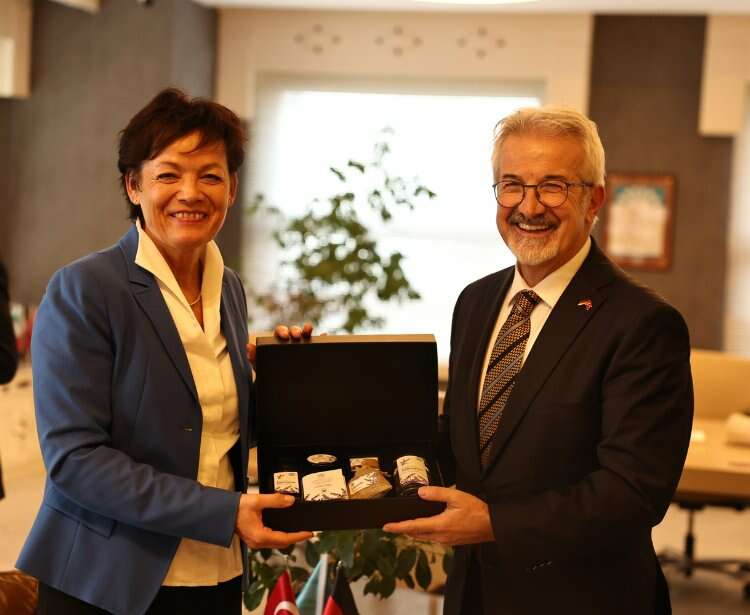 Ziyaret sonunda Başkan Erdem ve Lucia Puttrich, günün anısına birbirlerine hediyeler verdi.