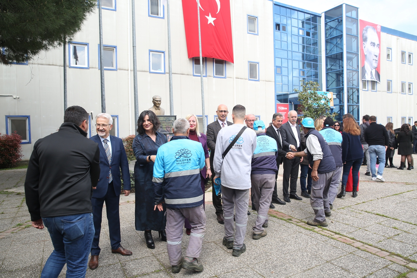 Nilüfer Belediyesi çalışanları bayramı erken kutladı. Başkan Turgay Erdem bütün dış birimleri gezerek herkesin bayramını kutlarken, Halk Evi’nde de çalışanlar topluca bayramlaştı. Temizlik İşleri Şantiyesi’ne de bayramlaşmak için giden Başkan Erdem’i davul zurnalı sürpriz bekliyordu.