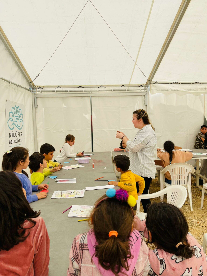 Bu kapsamda konteyner kentte kurulan kütüphane hem çocuklar hem de yetişkinlerin kitap ihtiyacını karşılamakta önemli rol üstlenirken, Nilüfer Belediyesi Sosyal Destek Hizmeti Müdürlüğü çalışanları ve Gönüllü Hareketi Derneği’nden gönüllüler, özellikle kadınlar ve çocuklar için çeşitli etkinlikler gerçekleştiriyor. Etkinliklerle afetzedelerin kendilerini daha iyi ifade etmesi ve afetin neden olduğu olumsuz etkilerle baş etmelerine destek sağlanıyor. Sahadaki psikolog tarafından konteyner kentte yaşayan kadın ve çocuklarla psikososyal destek görüşmeleri de devam ediyor.