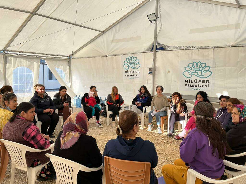 Yapılan çalışmalardan biri de ‘Kadınlar Birlikte’ buluşmaları. İnci Dönüşüm Derneği iş birliği ile düzenlenen buluşmalarda Samandağ’daki kadınlarla travmanın akut belirtileri üzerine görüşmeler ve deprem sonrası yaşanan ortak deneyim üzerinden duygu paylaşımı yapılıyor.