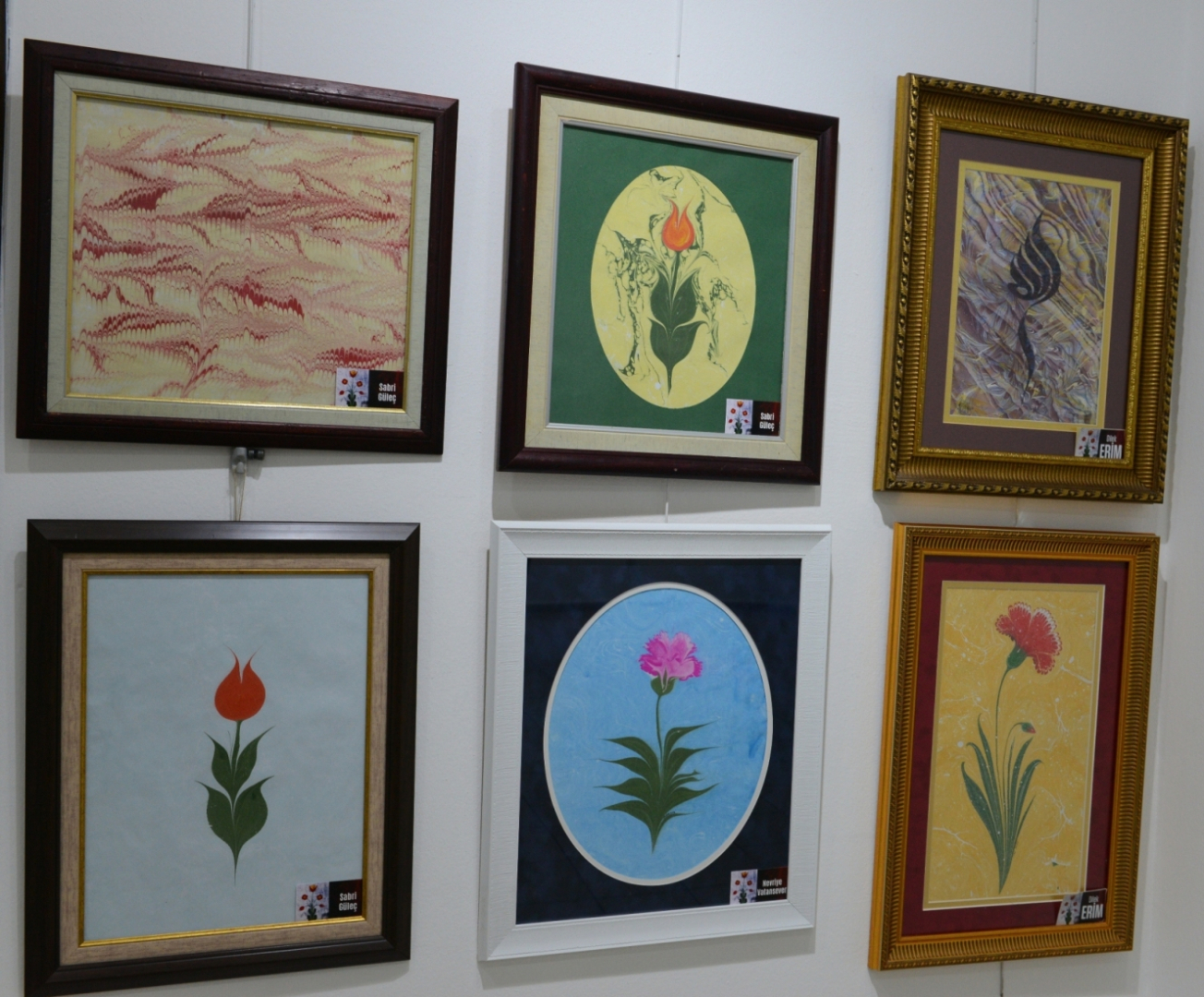 Nilüfer Belediyesi’nin düzenlediği Ebru Atölyesi’ne katılan kursiyerlerin, eğitim dönemi boyunca yaptığı çalışmalar Konak Kültürevi’nde düzenlenen sergide sanatseverlerle buluştu.