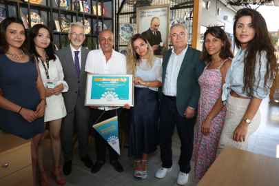 ‘Örnek İş Yeri’ belgesini, programa katılan Bozcaada Belediye Başkanı Dr. Hakan Can Yılmaz ile birlikte Köşebaşı Restoran İşletmecisi Özcan Dilekyiğit’e veren Başkan Erdem, işletme çalışanlarını da kutladı.