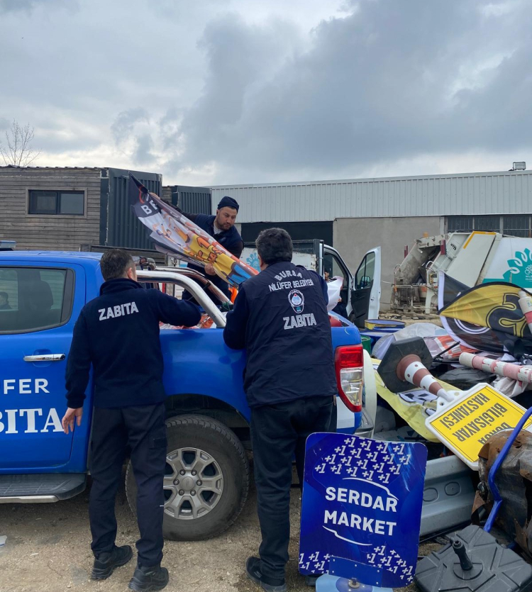 Nilüfer Belediyesi kent estetiğini bozan, yaya geçişini engelleyen, görüntü ve çevre kirliliği oluşturan tabelalarla ilgili çalışma gerçekleştirdi. Zabıta ekipleri, 29 Ekim Mahallesi’nde; Özlüce Bulvarı, Uğur Mumcu Bulvarı, Muammer Aksoy Caddesi, Beşevler Mahallesi’nde; Beşevler Caddesi, Bilginer Caddesi, Mihraplı Caddesi ve Görükle Mahallesi’nde; Atatürk Caddesi, Atatürk Bulvarı, Anafartalar Caddesi, Pamukkale Caddesi, Cevizlik Caddesi’nde denetim yaptı. Söz konusu bölgelerde izinsiz bir şekilde konulan duba, bayrak, reklam tabelalar toplandı. Yaya ve engelli yollarını engelleyen materyaller araçlara yüklendi. Toplanan malzemeler, işlemler tamamlandıktan sonra belirlenen alanlara taşındı.